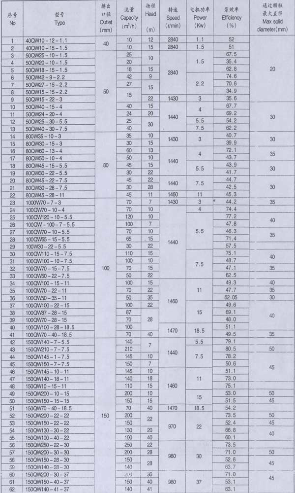 QW型系列混流式潛水泵系單級、單吸、軸向吸入、立式、機電一體、葉輪與電機軸直聯,潛入泥漿、原油或清水等介質中工作,輸送介質的混合物比重為1:1-1:1.45。是油田石漬鉆井過程中抽送漿、清水或原油至循環泥漿池的配套設備。也是電廠礦山、煉油、造紙、印染、環保、市政工程、化工、漁塘鹽廠、釀造、大理石廠、建筑、煤礦等行業抽排泥漿和污水理想的泵型。同時,也可根據用戶的實際使用要求及介質情況,設計生產其它規格型號產品.